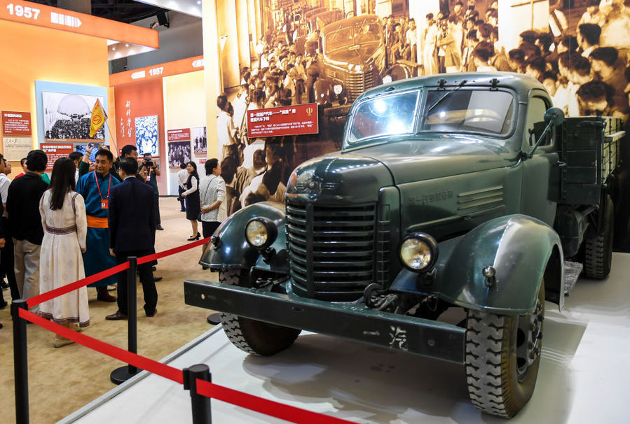 “偉大歷程 輝煌成就——慶祝中華人民共和國成立70周年大型成就展”上1956年制造的“解放”牌汽車。新華社記者彭源攝