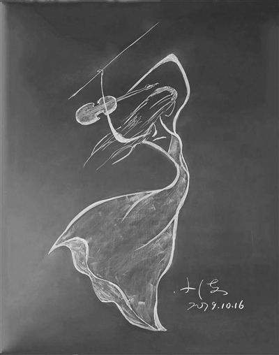 粉筆畫對于朱老師來說,畫起來也是循序漸進的。學生們說他有一手粉筆畫“絕活”,不帶圓規,可以畫得非常非常圓,好幾次學生課后用圓規驗證,結果發現相差無幾,這下學生們都服了。“當然起初我也畫不圓,畫得多了,用心畫了,積累到一定程度,也就成了。”朱老師告訴揚子晚報記者。
