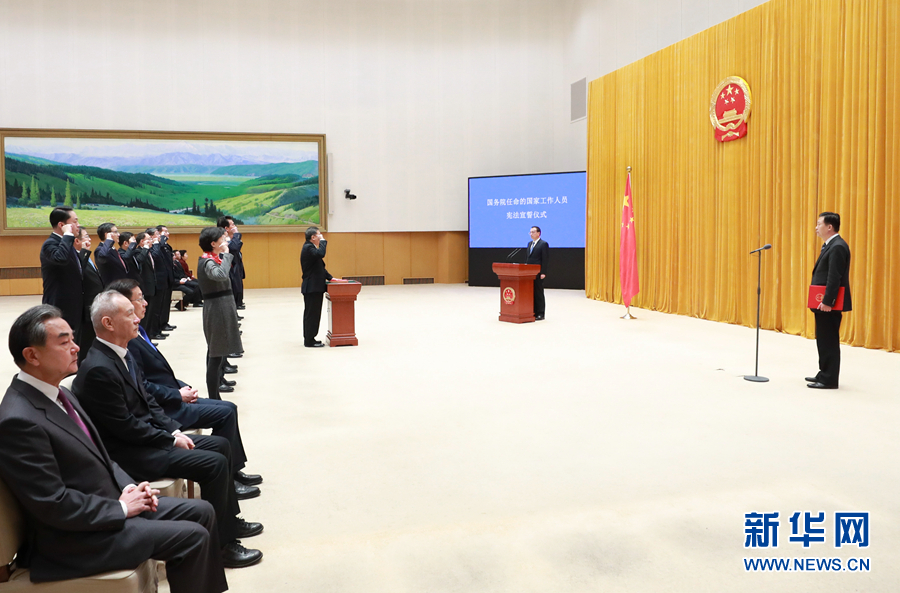 根據《中華人民共和國憲法》和《國務院及其各部門任命的國家工作人員憲法宣誓組織辦法》,2019年7月至11月國務院任命的14個部門和單位的16名負責人依法進行憲法宣誓。