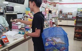 嫩綠的茭白叢中,一位農民坐在塑料凳上,手里一沓百元鈔票……