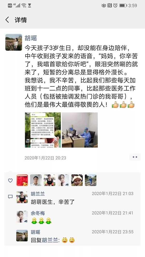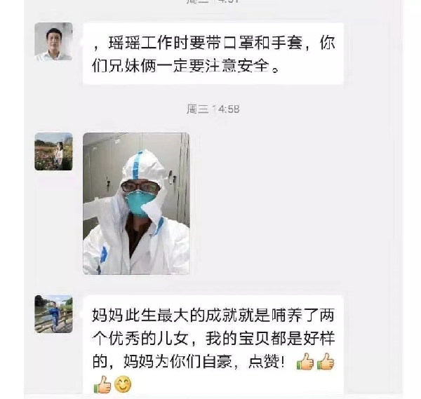 “我爸媽其實是挺擔(dān)心我們的,他們每天在家也都在關(guān)注肺炎的相關(guān)新聞,知道危險性,但從來沒有一句阻攔的話。我爸是一名老黨員了,他經(jīng)常對我和妹妹說,能用所學(xué)幫到社會是一件光榮的事情。”胡萌說。