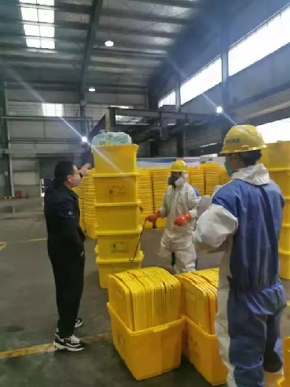 “得到武漢醫(yī)療廢物轉(zhuǎn)運人員缺少防護服的消息后,我們第一時間和武漢溝通聯(lián)系,讓第三方運營公司第一時間準(zhǔn)備妥當(dāng),盡最大能力支援武漢?!蹦贤ㄊ猩鷳B(tài)環(huán)境執(zhí)法局崔軍說。