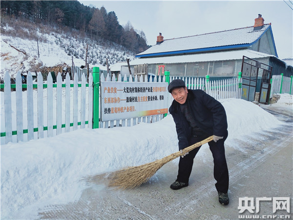 時值隆冬,通往大荒溝村的路上又下起了大雪,巍峨大山在側,早已把東北的“銀裝素裹”展示給春節返鄉的游子。