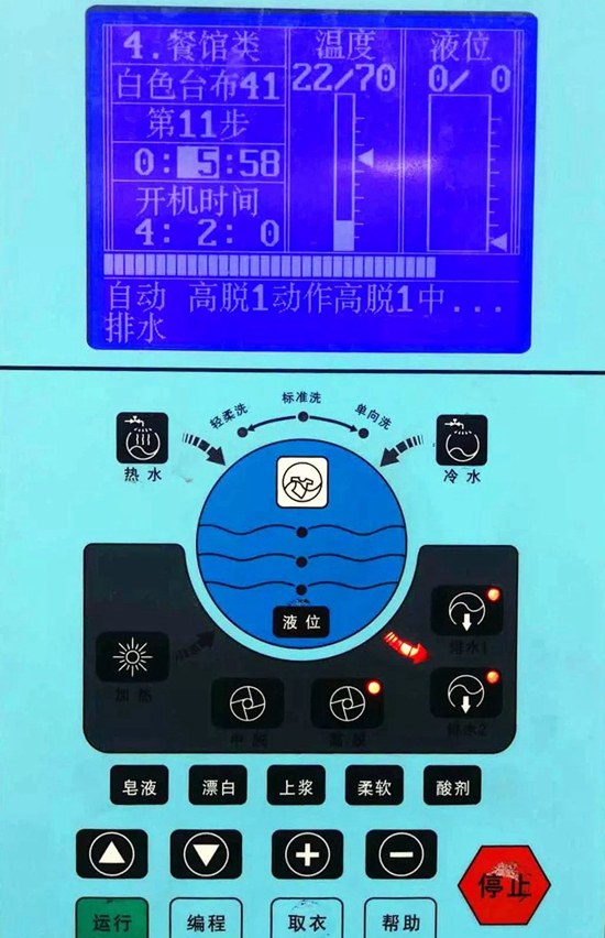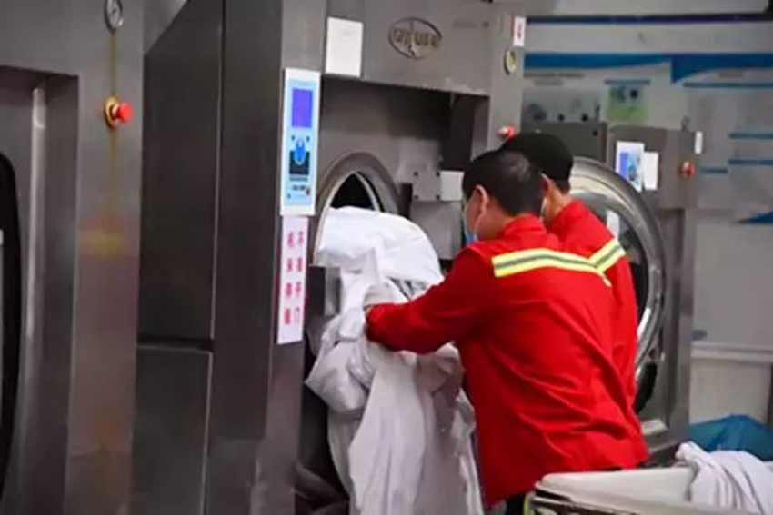 一套臥具要經過11道洗滌消毒工序,過程中設備會自動加熱,溫度逐步加熱至80攝氏度,在這樣的恒定高溫下要足足轉洗約50分鐘。