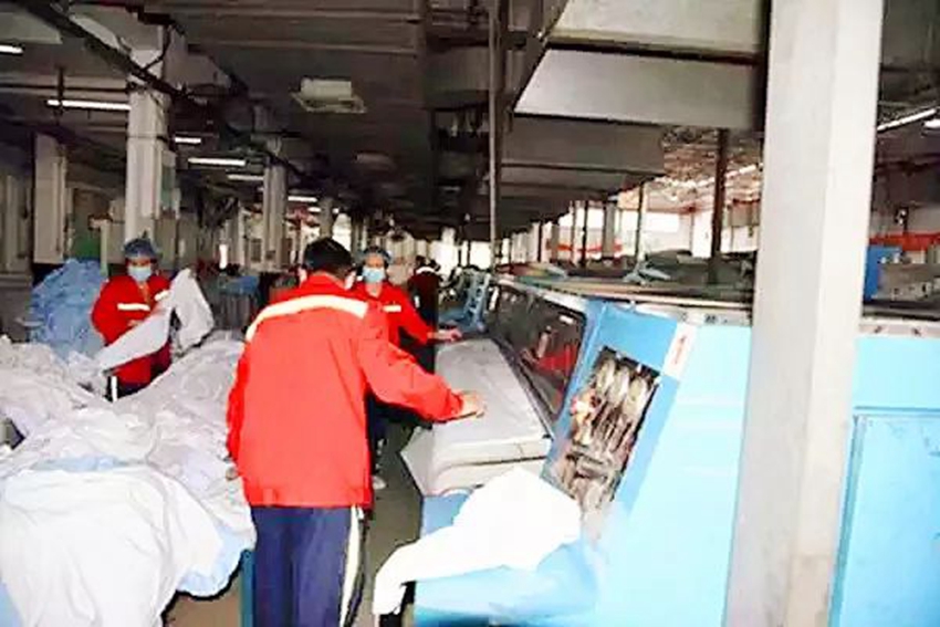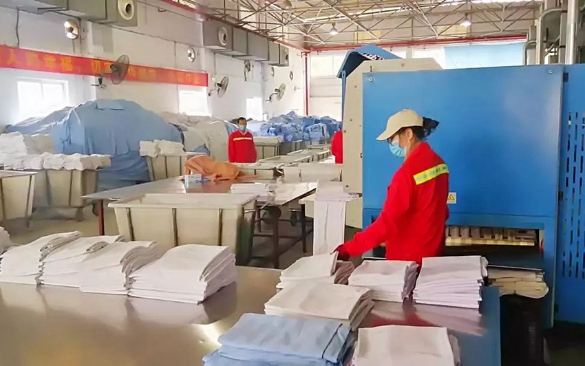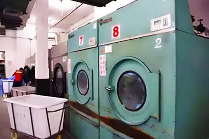 洗滌后的臥具會被放入烘干機內烘干,然后工作人員將臥具用高溫熨燙機進行最后的處理:一方面熨燙臥具至平整,另一方面可以進一步高溫消毒。