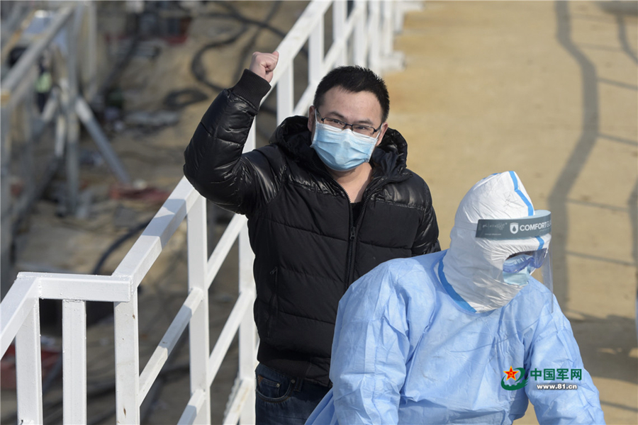 2月4日,萬先生充滿信心走進(jìn)火神山醫(yī)院。中國軍網(wǎng)記者范顯海 攝