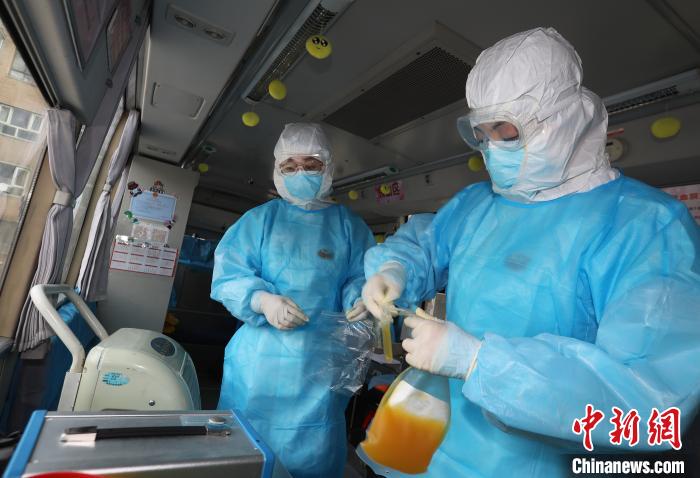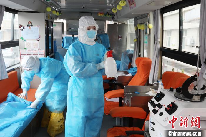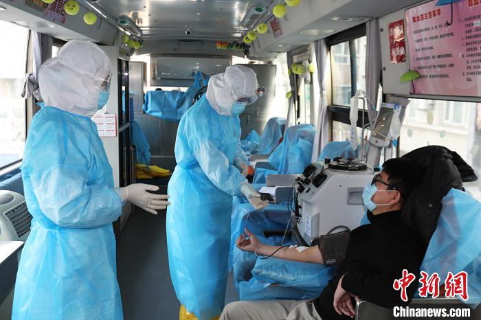 2月21日,河北省張家口市4名新冠肺炎康復者在該市中心血站采血車上成功捐獻血漿共800毫升。