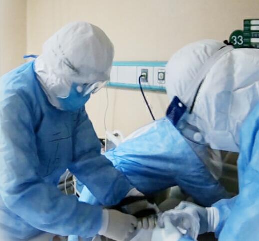 在廣東醫療隊抵達的第三天,56歲的廣東省重癥專家邢銳冒著風險為兩位病情危急的重癥患者實施插管手術,挽救了兩個生命。