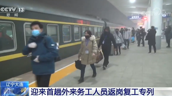 29日凌晨1時05分,由黑龍江省訥河開往遼寧大連莊河的K4082次務(wù)工人員返崗復(fù)工專列順利到達莊河北站。這是遼寧大連迎來的首趟外來務(wù)工人員返崗復(fù)工專列,521名務(wù)工人員分別來自黑龍江訥河、齊齊哈爾等列沿線的兩省六市。