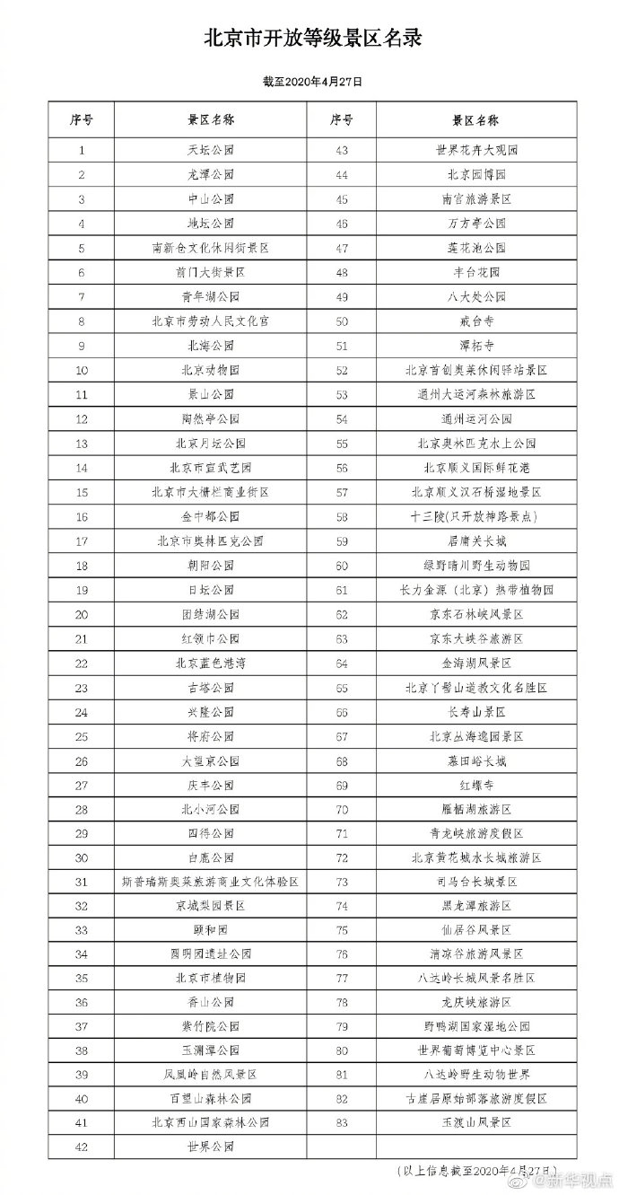 據了解,截至27日,北京市等級旅游景區(qū)有序恢復開放83家,開放率為35%。