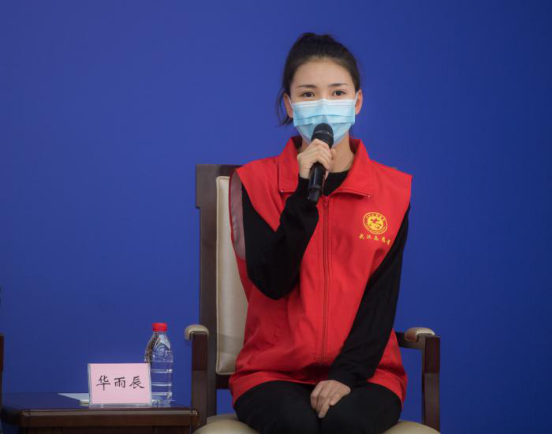2020年2月23日,國(guó)務(wù)院新聞辦公室在湖北武漢舉行國(guó)務(wù)院新聞辦記者見(jiàn)面會(huì),邀請(qǐng)?jiān)谖錆h疫情防控一線的普通工作者講述他們團(tuán)結(jié)奮戰(zhàn)的故事,并回答記者提問(wèn)。圖為武漢市青山區(qū)鋼花小學(xué)音樂(lè)教師華雨辰在記者會(huì)上。新華社記者 肖藝九/攝