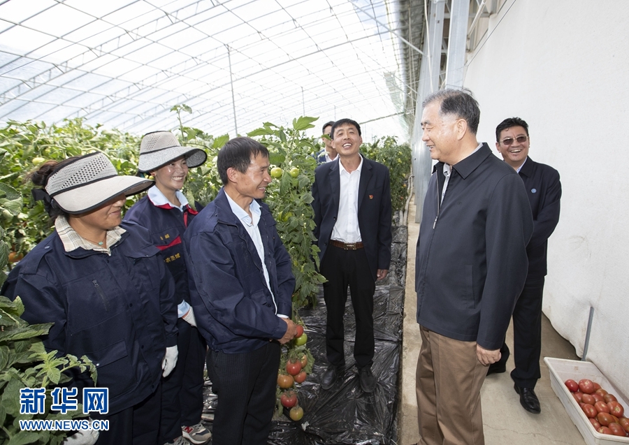 7月6日至8日,中共中央政治局常委、全國政協主席汪洋在西藏調研。這是7月7日,汪洋在日喀則白朗縣察看果蔬種植,與務工群眾交流。 新華社記者 黃敬文 攝