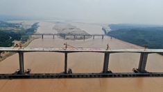 7月25日,工作人員在重慶墊江縣高安鎮(zhèn)龍溪河清漂。新華社記者 王全超 攝