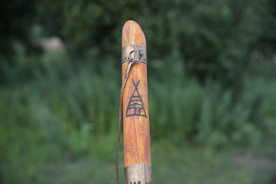 那春林制作的鹿哨上刻著鄂溫克族圖騰“撮羅子”。新華網(wǎng)焦鵬攝