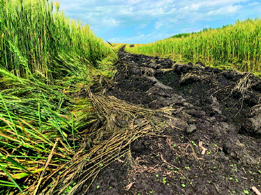 記者現(xiàn)場(chǎng)看到,陳巴爾虎旗特尼河林場(chǎng)大片大片麥田、油菜田里,被鏟出一道道觸目驚心、黑綠相間的“斑馬線”?!霸儆惺嗵炀鸵崭盍耍F(xiàn)在毀了實(shí)在可惜!”附近群眾說(shuō)。