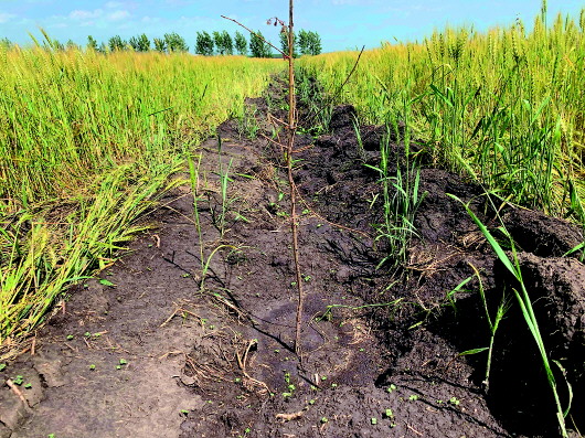 上圖:8月2日,陳巴爾虎旗特尼河林場(chǎng)大片麥田、油菜田,被鏟出一道道黑綠相間的“斑馬線”。中圖:8月2日,陳巴爾虎旗特尼河林場(chǎng)一處被毀的麥田。下圖:8月2日,陳巴爾虎旗特尼河林場(chǎng)一處被毀的麥田里,一些突擊種上的樹苗已經(jīng)枯萎?!”緢?bào)記者王靖攝