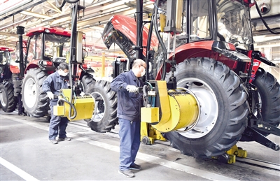 中國一拖員工在總裝車間流水線上作業。記者 李嘉南 攝