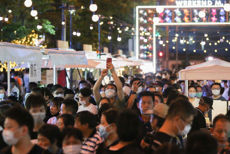 ?2020年6月6日,市民在上海市黃浦區的一處夜市消費休閑。新華社記者 丁汀 攝 ?