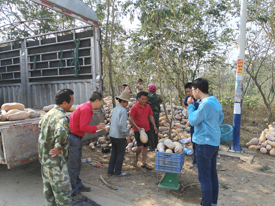 許多貧困戶還記憶猶新,2017年樂妹村的南瓜滯銷,3毛錢1斤還無人問津,大家心急如焚。王聯(lián)春得知情況后馬上聯(lián)系海南大學(xué),以每斤1元的價格收購了樂妹村的9萬多斤南瓜。村民把南瓜用拖拉機一車一車地拉到村口,王聯(lián)春則在村口指揮稱重和運輸。
