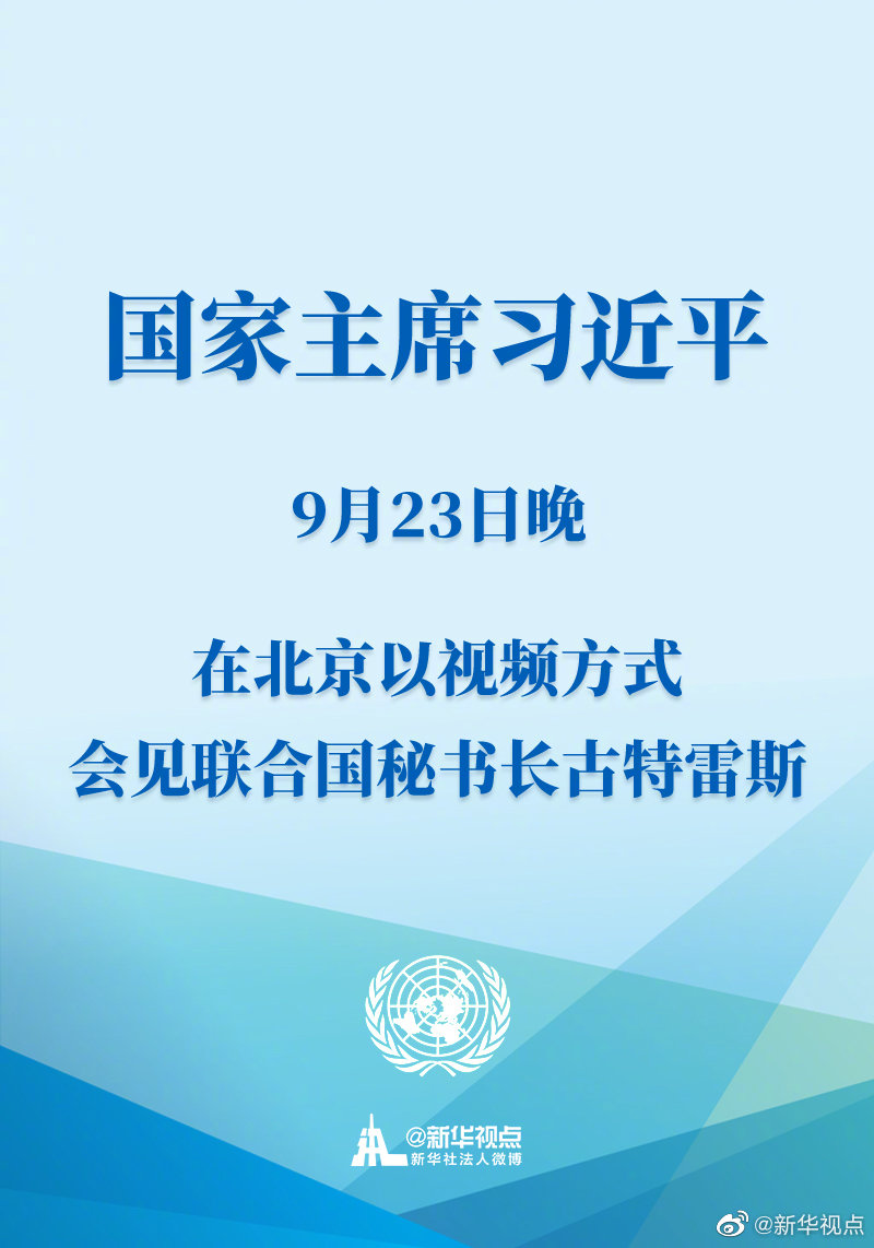 國家主席習近平23日晚在北京以視頻方式會見聯(lián)合國秘書長古特雷斯。 ????