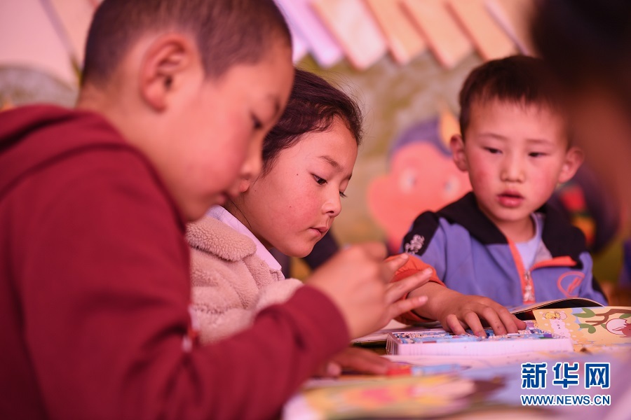 9月17日,在青海省果洛藏族自治州瑪沁縣拉加鎮(zhèn)中心幼兒園,孩子們正在專心上美術(shù)課。(新華網(wǎng)潘彬彬 攝)