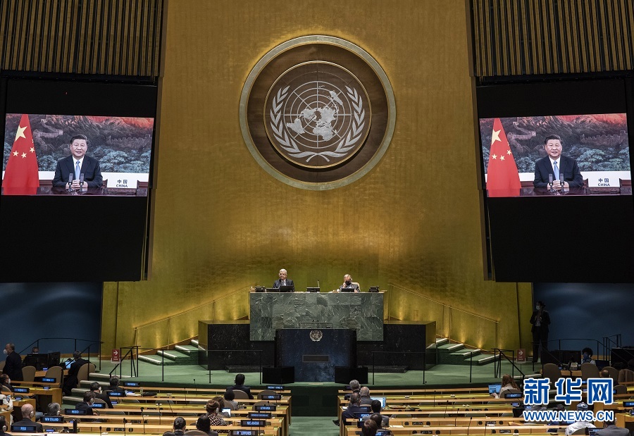 2020年9月22日,習近平在第七十五屆聯合國大會一般性辯論上發表重要講話,提出我們有信心如期實現現行標準下農村貧困人口全部脫貧,提前10年實現《聯合國2030年可持續發展議程》減貧目標。新華社發(聯合國供圖/埃瑟金德爾·德貝貝 攝)