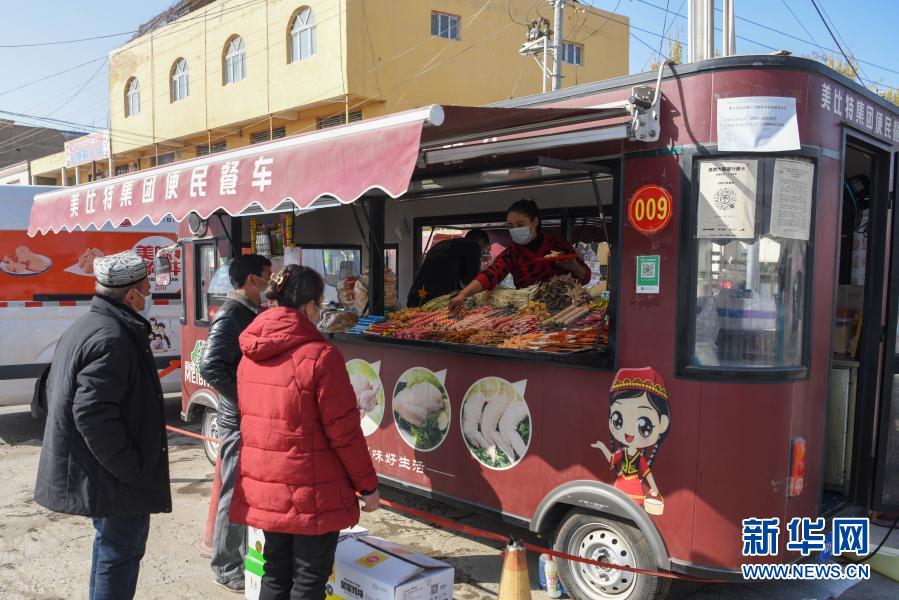 這樣的餐車如今在墨玉縣熱鬧街道都能見到,這是當(dāng)?shù)匾M扶貧企業(yè)新疆美比特集團有限公司今年新推出的扶貧利民項目。公司配送中心餐車配送負(fù)責(zé)人邵金介紹,目前有約500個便民餐車活躍在大街小巷,企業(yè)統(tǒng)一配送貨品,確保食品安全,還提供餐車維修服務(wù),未來計劃推廣到整個和田地區(qū)。