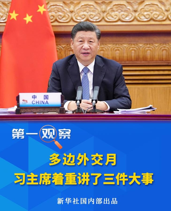 繼9月底10月初出席聯(lián)合國成立75周年系列活動(dòng),11月10日至22日,習(xí)近平主席又以視頻方式接連出席了上合、金磚、APEC、G20四大多邊平臺的一系列重大外交活動(dòng)。