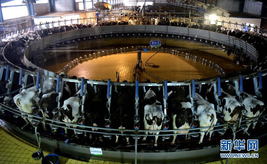 這是河南省駐馬店市正陽現(xiàn)代化牧場(chǎng)擠奶車間一角(10月27日攝)。