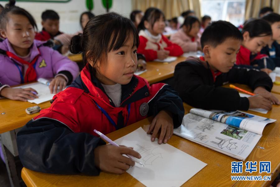 云南省鎮雄縣以古鎮巖洞腳九年一貫制學校的孩子們在上課(11月11日攝)。新華社記者 王冠森 攝