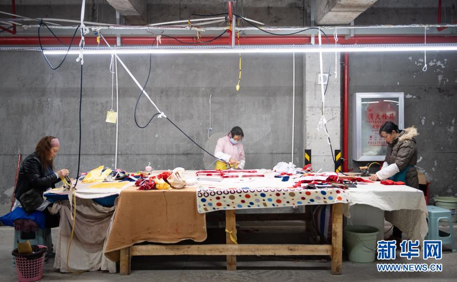 云南省鎮雄縣魯家院子易地扶貧搬遷安置點的居民在制衣扶貧車間內工作(11月13日攝)。新華社記者 王冠森 攝