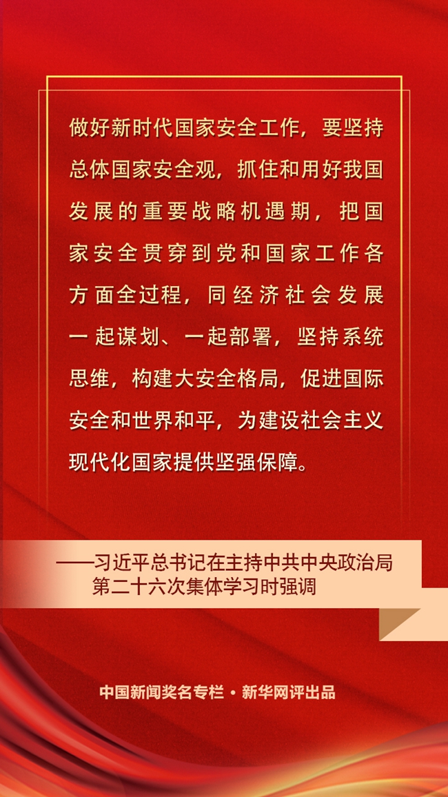 習近平在中央政治局第二十六次集體學習時強調 堅持系統思維構建大安全格局 為建設社會主義現代化國家提供堅強保障