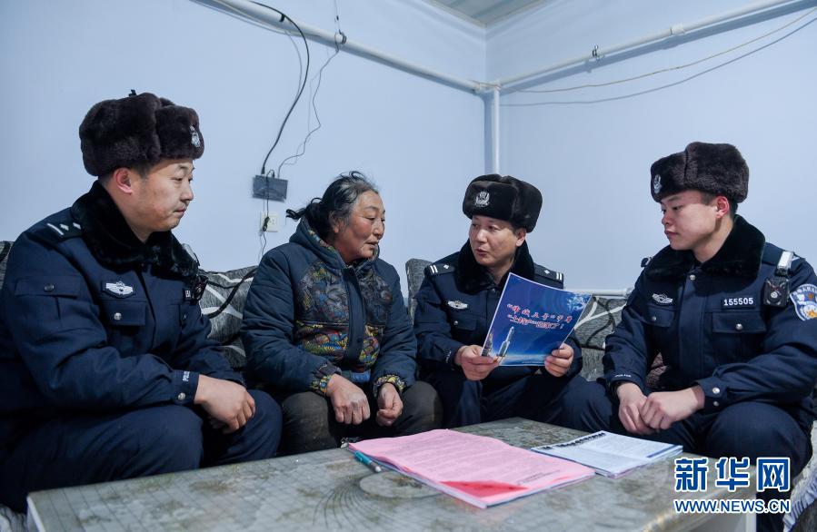 12月15日,內蒙古烏蘭察布邊境管理支隊腦木更邊境派出所民警向當地牧民宣傳返回器回收期間的安全注意事項。新華社記者 連振 攝