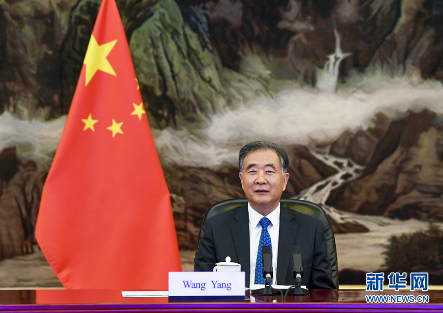 12月16日,全國政協(xié)主席汪洋在北京以視頻方式會見巴基斯坦參議院主席桑吉拉尼。新華社記者 高潔 攝