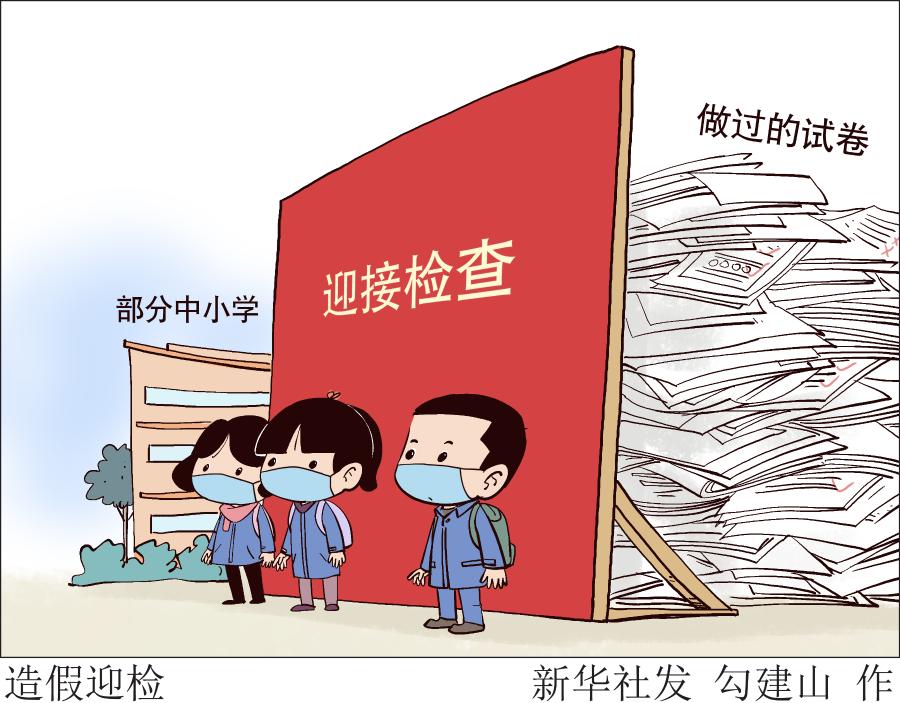 “明天學(xué)校迎接本學(xué)期檢查,所有做過的試卷都放在家里!”“檢查組要來,學(xué)校文化墻上再貼幾個標(biāo)語”……進(jìn)入12月后,部分中小學(xué)師生全力以赴迎檢,有的學(xué)校甚至停止正常的教育教學(xué),反復(fù)叮囑孩子“藏好試卷”,造假迎檢。