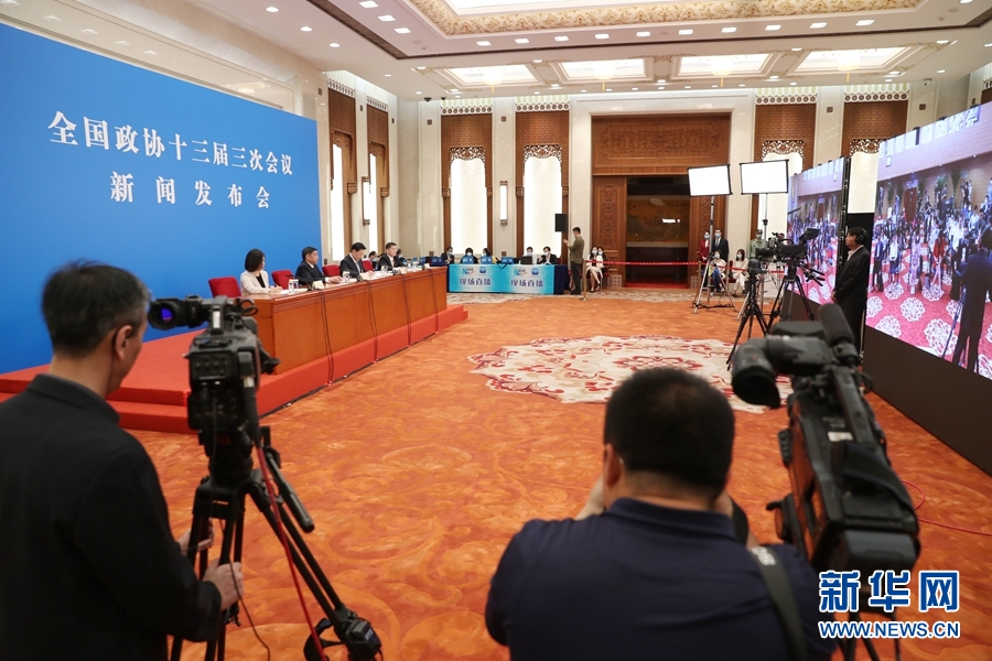 5月20日,全國政協十三屆三次會議新聞發布會在北京舉行,大會新聞發言人郭衛民介紹本次大會有關情況并回答中外記者提問。圖為人民大會堂新聞發布廳現場。新華網 王翰林 攝