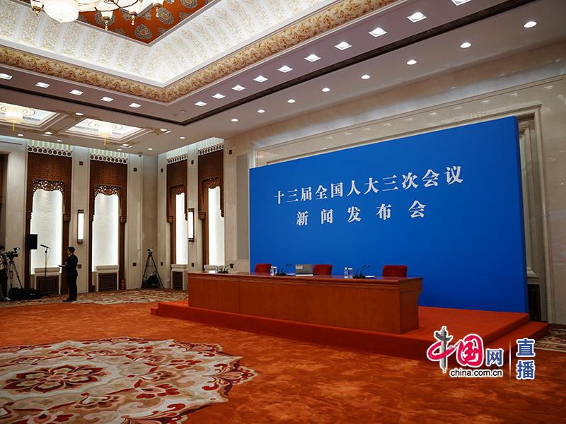 十三屆全國(guó)人大三次會(huì)議新聞發(fā)布會(huì)即將開始。中國(guó)網(wǎng) 楊佳 攝