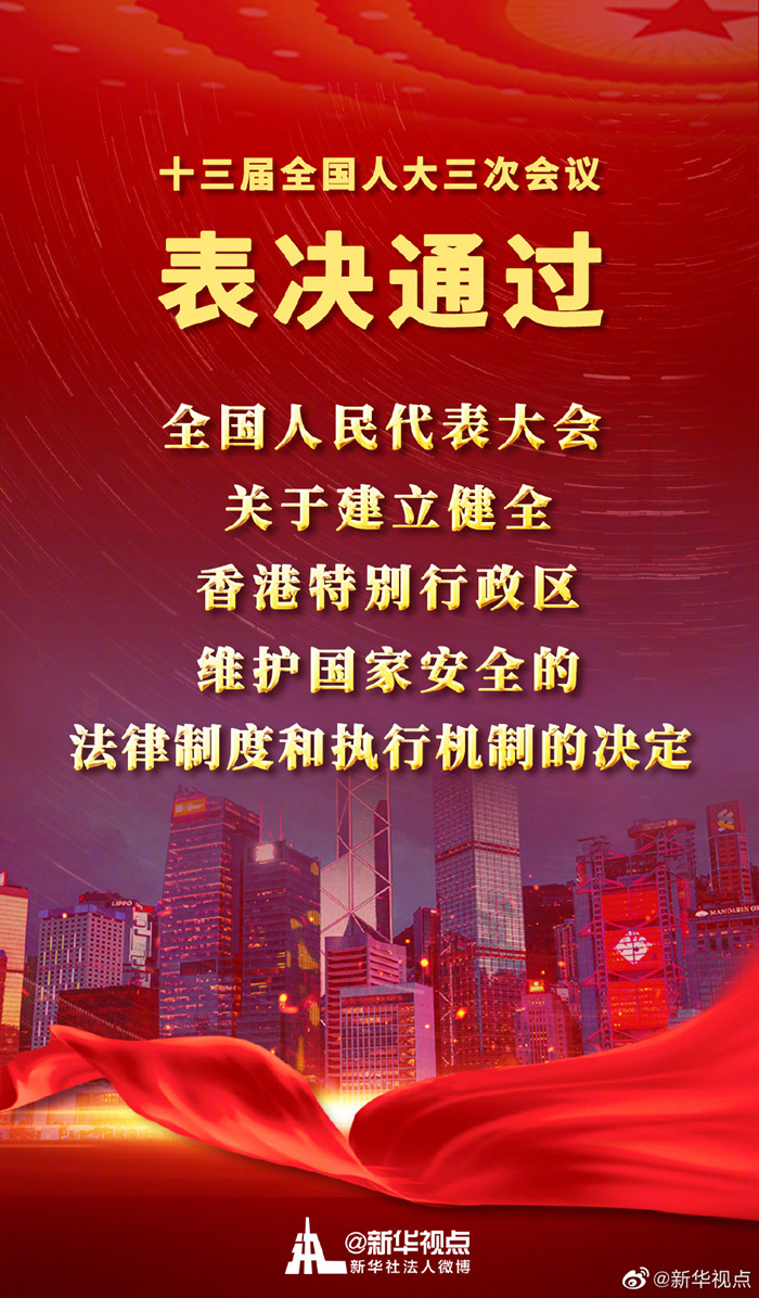 (兩會受權發布)全國人大高票通過關于建立健全香港特別行政區維護國家安全的法律制度和執行機制的決定-新華網
