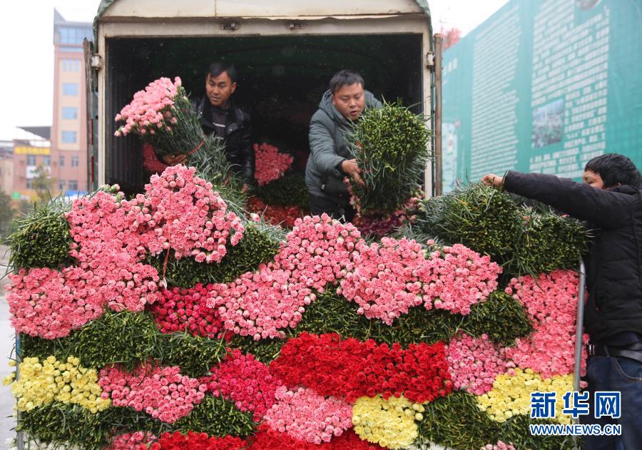 2月9日,商家在昆明斗南花卉市場(chǎng)準(zhǔn)備鮮花。新華社發(fā)(梁志強(qiáng) 攝)