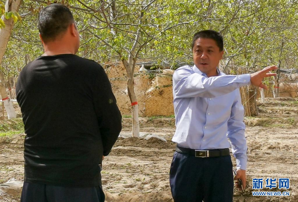 馮武年(右)在基層調(diào)研(2019年4月8日攝)。新華社發(fā)(皮山縣委宣傳部供圖)