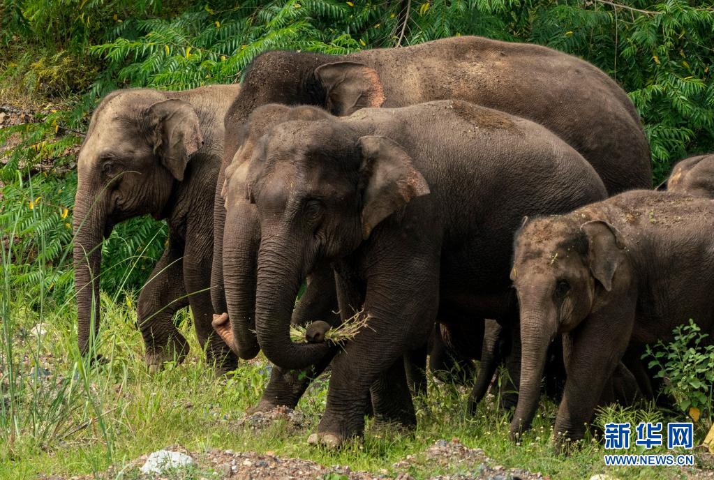 8月9日,象群在云南省玉溪市元江縣境內(nèi)的叢林中覓食。新華社記者 江文耀 攝