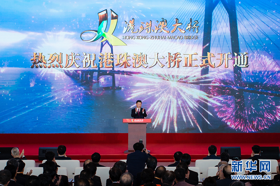 新華社珠海10月23日電(記者霍小光、張曉松、周強)一橋連三地,天塹變通途。港珠澳大橋開通儀式23日上午在廣東省珠海市舉行。中共中央總書記、國家主席、中央軍委主席習近平出席儀式,宣布大橋正式開通并巡覽大橋,代表黨中央向參與大橋設計、建設、管理的廣大人員表示衷心的感謝、致以誠摯的問候。