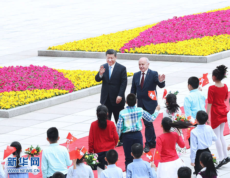 習近平指出,今年是中華人民共和國成立70周年。瑞士是最早承認并同新中國建交的西方國家之一,這體現了瑞士政府的長遠戰略眼光,也蘊含著瑞士人民對中國人民的友好情誼。建交近70年來,中瑞關系始終走在中歐關系前列。兩國建立創新戰略伙伴關系,是中國首次同外國建立以創新為標志的戰略伙伴關系。中方愿同瑞方一道,深化戰略合作。