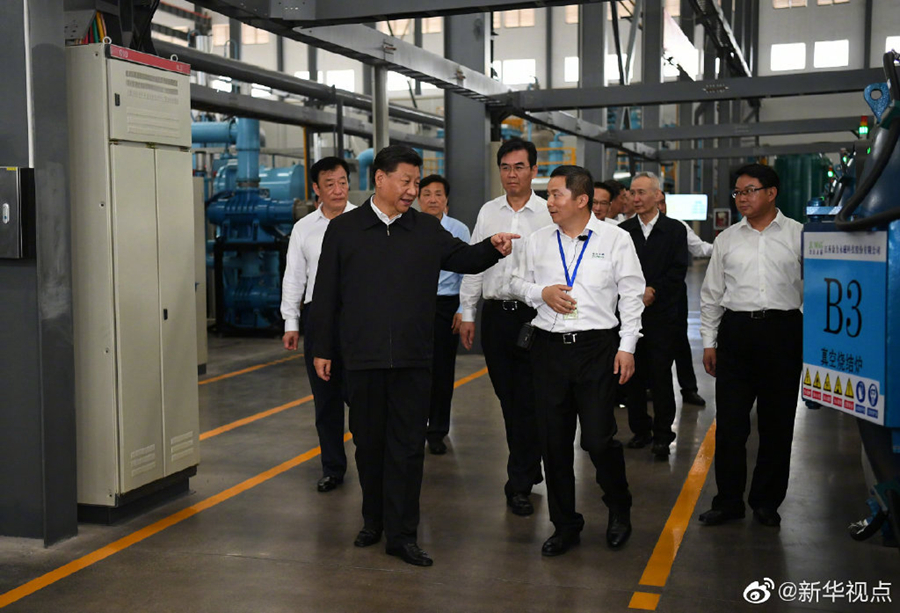 習(xí)近平總書(shū)記20日赴江西考察調(diào)研。他首先考察了位于贛州市的江西金力永磁科技股份有限公司,了解企業(yè)生產(chǎn)經(jīng)營(yíng)和贛州市稀土產(chǎn)業(yè)發(fā)展情況。(文字:張曉松 攝影:鞠鵬、謝環(huán)馳)?