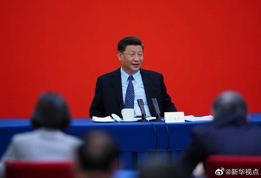 23日上午,中共中央總書記、國家主席、中央軍委主席習近平看望了參加全國政協十三屆三次會議的經濟界聯組委員,并參加聯組會,聽取意見和建議。(文字記者:張曉松、鄒偉 攝影記者:謝環馳)