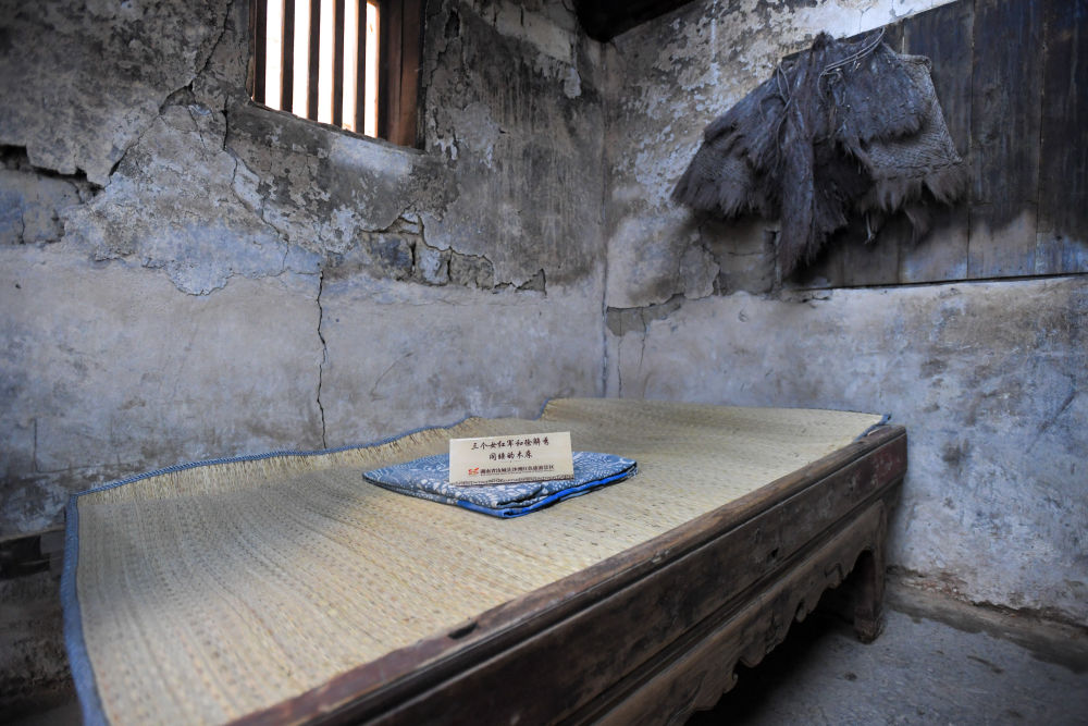 “在湖南汝城縣沙洲村,3名女紅軍借宿徐解秀老人家中,臨走時(shí),把自己僅有的一床被子剪下一半給老人留下了。”