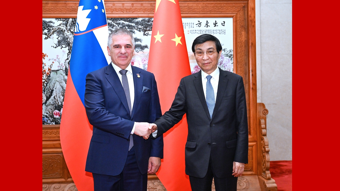 王沪宁会见斯洛文尼亚国民委员会主席洛特里奇