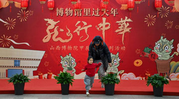 2月26日,参观者在河南安阳殷墟博物馆新馆内观看展出的刻辞卜甲。