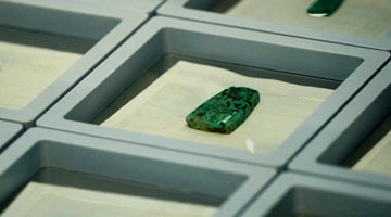 3月25日,湖北省博物馆学术研究中心主任杨理胜在观看云梦睡虎地秦简主人“喜”的复原像。