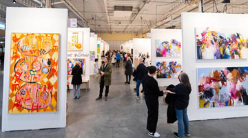 4月16日,在西班牙首都马德里,参观者在“自然而然——中国当代艺术展”上参观。